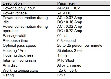 Turnstile can be configured to be bi-directional oruni-directional. Built in acrylic plate for easyintegration with other devices.